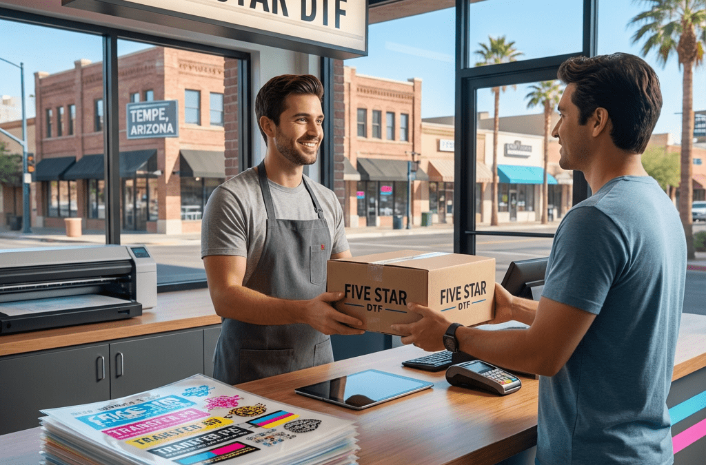 Get custom DTF transfers the same day, right here in the Valley of the Sun. Whether you run an Etsy shop, a local apparel brand, or a print business that needs fast turnaround, we make same-day pickup simple and reliable. Here’s how Five Star DTF helps you move from artwork to press-ready transfers in hours, not days.