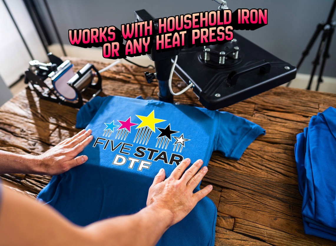 No — upload your artwork and order ready-to-press transfers from Five Star DTF.